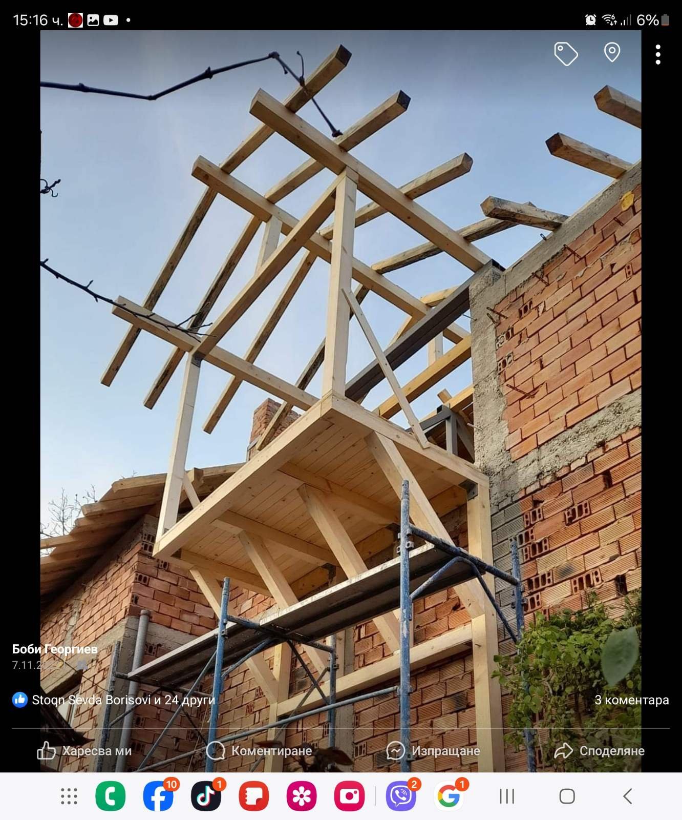 Професионални ремонти на покриви, изграждане на дървени конструкции, подпорни стени, огради и други.